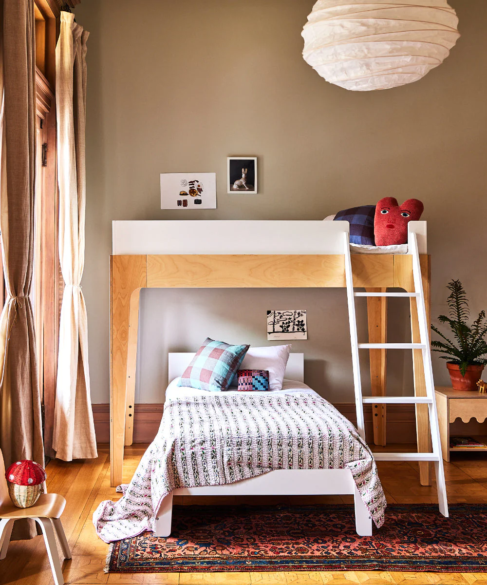 Our best-selling Perch Twin Bunk Bed has been a family favorite since 2009. Ethically crafted in Europe, it’s designed to adapt to your family’s evolving needs—use it as a bunk bed, separate it into a loft and twin bed, or add our Vertical Ladder and Perch Trundle for sleepovers.
